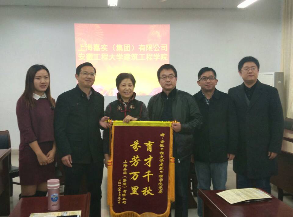 为进一步拓展毕业生的就业途径,实现人才与企业的无缝对接,近日,上海嘉实(集团)有限公司人力资源管理中心主任唐龙妹、人事主管郁佳等代表专程来到我校,为建筑工程学院送上锦旗一副:“育才千秋,芬芳万里”,并就校企双方下一步的合作进行交流。学院党委书徐达奇、院长陆峰,党委副书记李烨等参加交流,并对上海嘉实(集团)有限公司的此次赠旗表达了感谢。