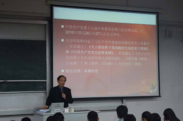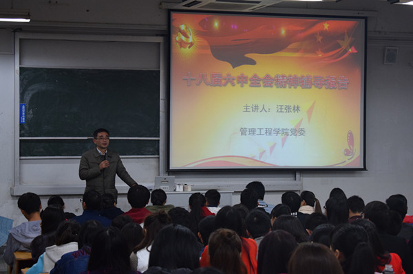 11月17日下午,管理工程学院在2教206举行了学习贯彻党的十八届六中全会精神辅导报告会,院党委书记汪张林担任主讲,学院全体党支部书记、各支部党员、入党积极分子、以及部分学生干部参加了报告会。报告会由院党委副书记黄炜主持。