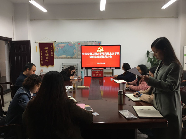 11月18日,马克思主义学院研究生党支部在院会议室召开党员大会,选举产生新一届支部委员会。院党总支副书记王勇智、科研与研究生秘书王效以及支部全体党员参加本次会议。会议由支部书记余行主持。