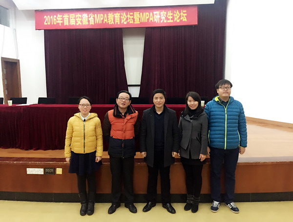 11月26日,由中国科学技术大学MPA教育中心主办的2016年首届安徽省MPA教育论坛暨研究生论坛,在中国科学技术大学举行。我校人文学院副院长周伟、MPA硕士生导师赵宏斌以及三名MPA研究生参加了此次论坛。