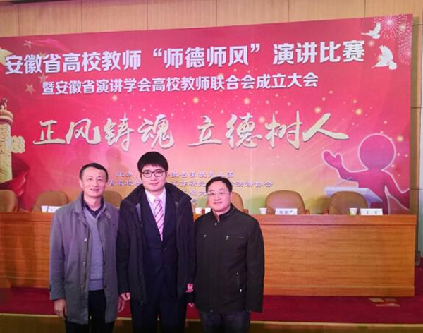 为积极培育和践行社会主义核心价值观,进一步弘扬爱岗敬业、无私奉献的高尚师德,激励广大教师甘守三尺讲台,争做“四有”教师,12月2日至3日,由省委教育工委主办的安徽省高校教师“师德师风”演讲比赛的复决赛在合肥工业大学举办。我校教师尚子翔荣获一等奖,校工会主席王河带队参赛。