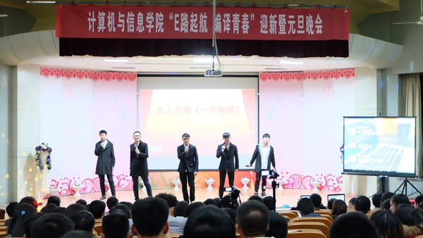12月2日晚,计算机与信息学院“E路启航,编译青春”迎新晚会在学术报告厅举行,院党委书记邬海量、副书记章靖平以及辅导员罗国旗、苑雨露莅临晚会现场,他们和学生们一起度过了一个难忘的夜晚。