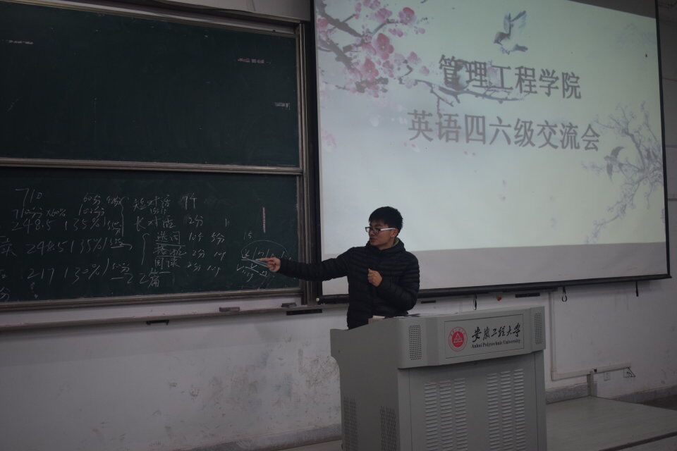 12月5日晚7点,管理工程学院英语四六级交流会在5教217教室举行;物流141张苗苗、人力151刘冬菊、人力152奚近强、国贸152储华琼四位同学主讲,新生辅导员张孝琪、赵恒梅组织2016级学生参加了交流会。