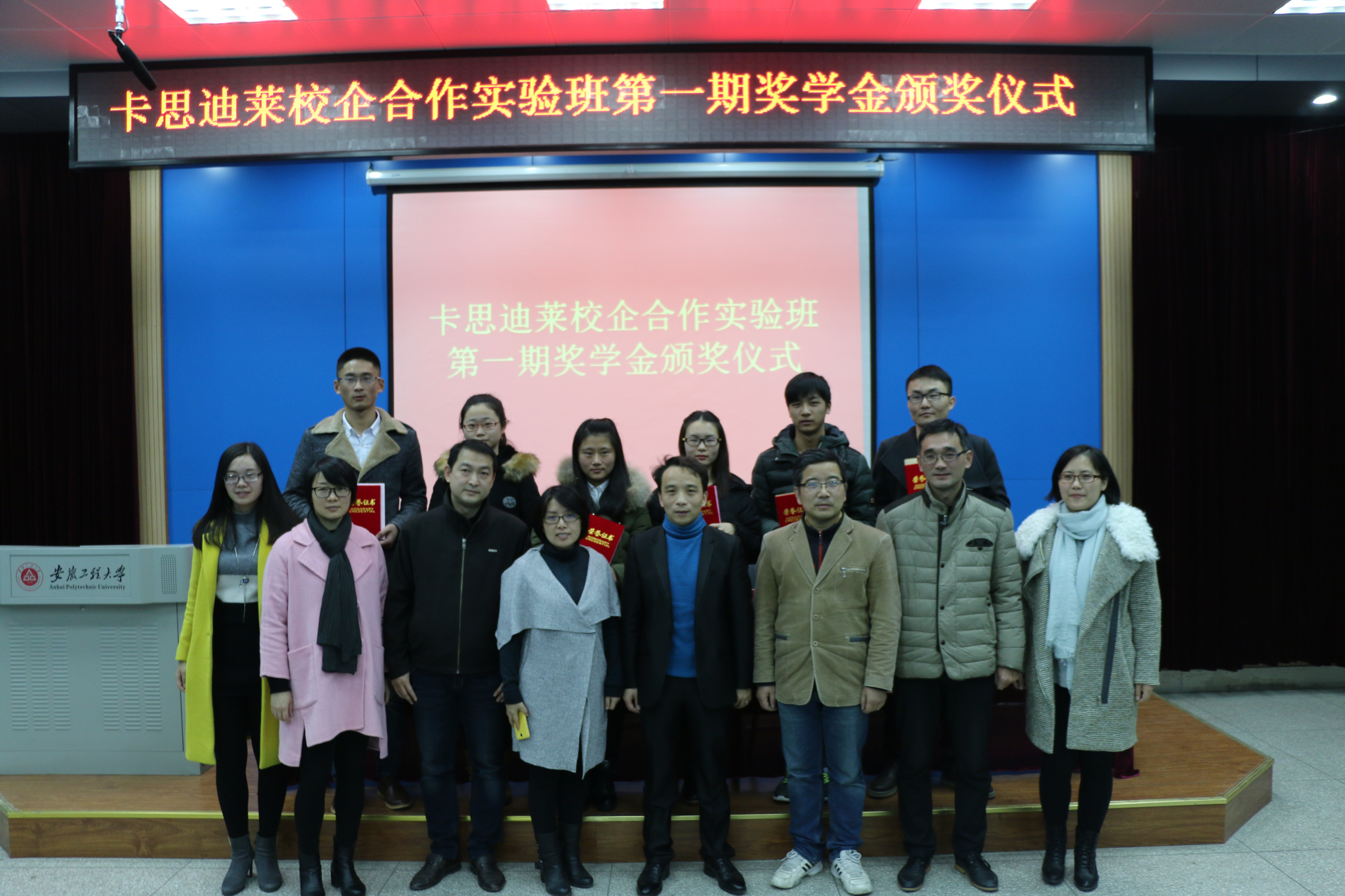 我校与江苏卡思迪莱服饰有限公司是中国纺织工业联合会和中国纺织服装教育学会联合授牌的“中国纺织服装人才培养基地”,经过双方协商,学校于2015年11月开设“卡思迪莱校企合作实验班”,学员来自纺织服装学院、管理工程学院、人文学院、外国语学院等多个学院。一年中实验班导师们共开设讲座5场,专业课程9门,并结合企业实际,在市场营销、服装制版、生产管理、职场礼仪、职业生涯规划等多方面对学生进行了专业培训,导入企业案例,使学生的理论知识与企业实际相联系。公司还为学生提供了暑期实习岗位,使学生的实践能力得到了较大提高。