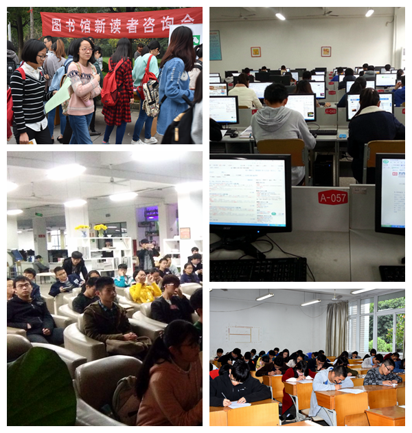 本届“读者服务宣传月”以“微语微笑微服务”为主题,分为启动活动、竞赛活动、文献资源利用系列讲座、邀请讲座、读者互动、读书文化活动等六个版块,活动丰富,波及面广,参与人数多。“迷‘图’之旅”活动的开展,让2016级新读者通过新颖、立体的方式更快地熟悉图书馆;“2016级新生读者利用图书馆知识及技能竞赛”让新生驰骋于图书馆的沙场,将其学习的能力在图书馆信息素养养成上尽情发挥;“新生读者咨询会”和“读者座谈会”让新生读者有了与图书馆老师面对面的交流,更多的建议和意见将被图书馆采纳;“文献资源利用系列培训”既有面向本科生的移动图书馆使用讲座,也有面向研究生的外文数据库讲座,更有走进学院为学院老师贴身打造的专题数据库讲座;“品春节符号寻传统文化——真人show”活动让同学通过春节符号设计为线索来感受中华传统文化;“书韵留香 你我共享”读书品阅会让同学们爱上读书,共同分享读书的喜悦;已经连续举办五届的百科知识竞赛更是受到众多同学的青睐。