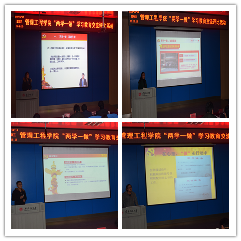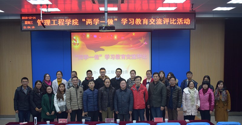 12月14日晚,管理工程学院党委“两学一做”学习教育交流评比活动在五教117举行。校党委委员、宣传部部长孙浩然,校党委研工部部长刘一,校团委书记冉昆玉,校学工部副部长胡家增,校党委组织部秘书梁雪松出席展示评比活动并担任评委。学院党委书记汪张林、党委副书记黄炜、团委书记及全体学生党支部书记、辅导员,全体学生党员以及入党积极分子共计200余人观看比赛。