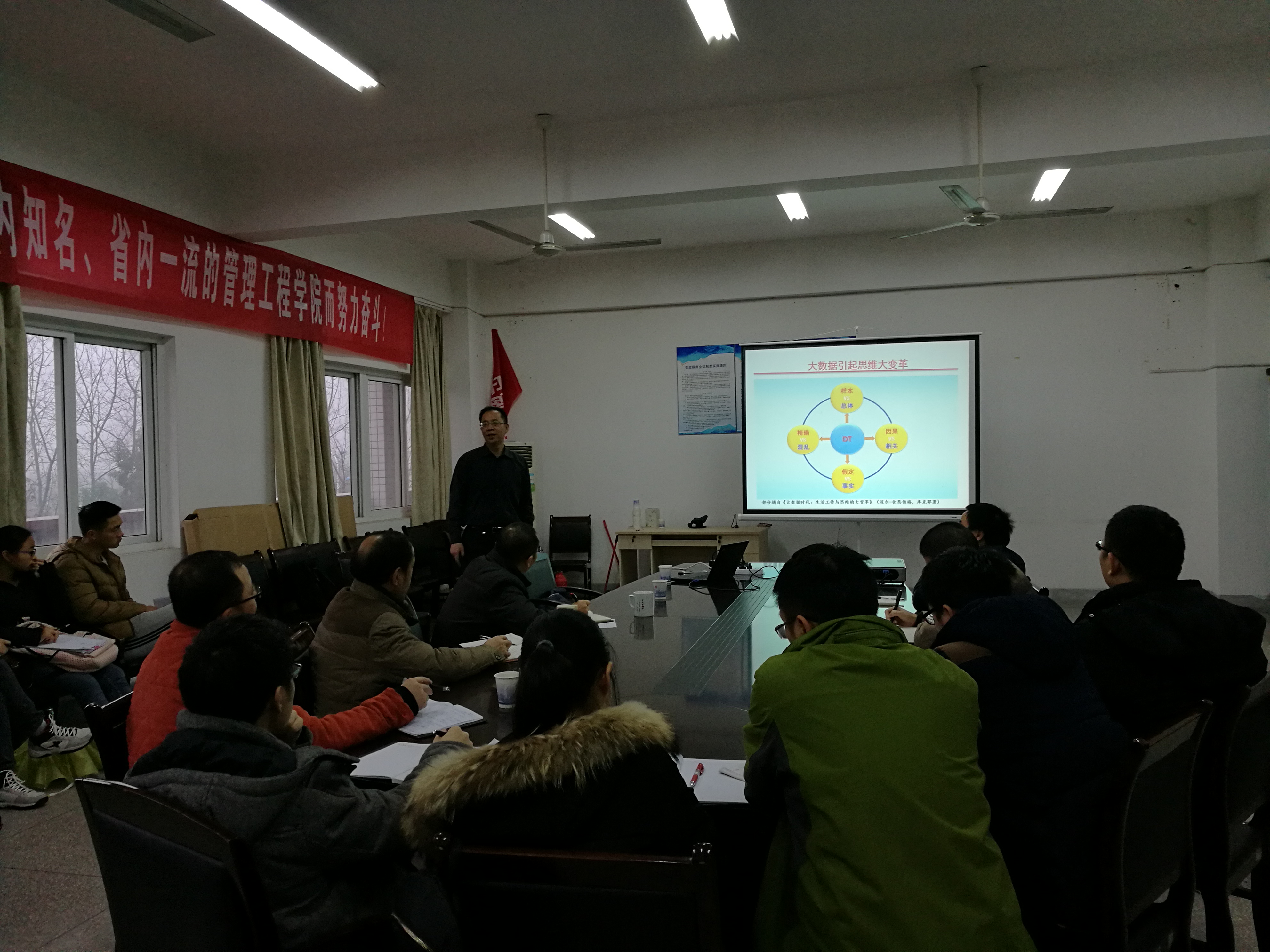 应管理工程学院、科技处和研究生部的邀请,12月25日下午,合肥工业大学管理学院院长、博士生导师刘业政教授在学院会议室作了题为“大数据思维与管理创新”的学术报告。管理工程学院党政领导、部分教师、研究生聆听了报告。报告由院长王忠群主持。