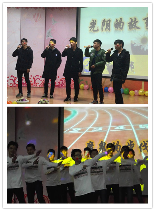 院团委学生会成员的一段新年祝福视频,拉开了整个晚会的序幕。精彩的视频点燃了晚会现场同学们的热情,整个报告厅气氛热烈。体育部的舞蹈《魔鬼的步伐》再次推动了现场的气氛,风格变化的音乐,演员们熟练的舞姿,博得台下观众的阵阵喝彩。实践部的合唱《重返十七岁》勾起在场观众内心的记忆,动人心弦的歌声触动着同学们美好的青春记忆。文艺部的小品《人生时间表》表演生动,“人的一生究竟有多么短暂”的思考让不少同学感触颇深。还有,《暗香、天空之城》单簧管演奏、《晴天》弹唱、《seve》舞蹈、小品《疯狂旅游团》、相声《新五官争功》等节目都精彩不断、惊喜不断,为观众呈现一场精彩绝伦的视听盛宴。晚会最后,团委学生会所有的部长、副部长上台演唱《相亲相爱》,温暖而有力的歌声,寓意着团委学生会是一个相亲相爱的大家庭。整个晚会节目精彩纷呈,高潮不断,现场掌声迭起,让在场的观众意犹未尽。