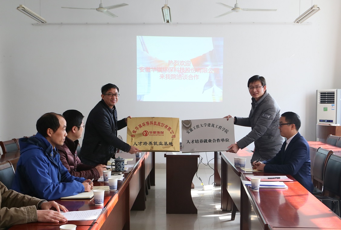为进一步拓展毕业生的就业途径,实现人才与企业的深度对接,12月29日,安徽华骐环保科技股份有限公司人力资源部部长桑超峰、工程技术研究中心副主任张德伟、人力资源部招聘助理鲁燕等代表专程来到建筑工程学院,就校企合作进行交流。学院党委书徐达奇、副书记李烨、专业课教师张明、徐晓平博士等参加交流洽谈会。