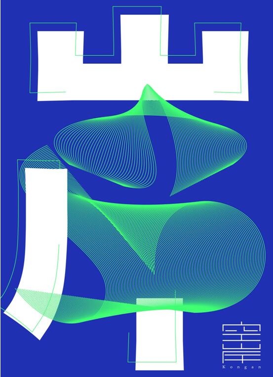 《空岸》是以汉字为元素设计的。“空”字由象征生命力的绿色组成,代表着追求和未来,“岸”字是一种目的,一种归宿。作品意在表达在快节奏的现代社会里,只有放空自我,才能找回最本真的梦想。这是中国传统哲学思想的现代呈现。