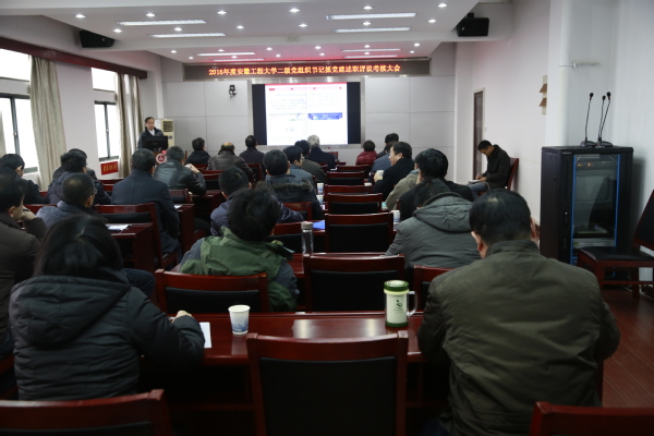 校党委书记陈其工作点评并作重要讲话。他对全校17个二级党组织书记在过去一年中抓党建工作付出的努力和取得的成效给予了充分肯定,他指出,各二级党组织书记以严的要求、实的作风,扎扎实实履行党建工作第一责任人职责,学校的党建工作整体上了新台阶,全面从严治党取得了根本性变化和决定性成效。他同时也指出了工作存在的问题和不足,提出了努力改进的方向,并对谋划好2017年党建工作提出了要求。陈其工强调,开展二级党组织书记抓党建述职评议考核工作,是落实全面从严治党的重要举措,是贯彻上级精神的必然要求,是学校党委全面掌握各二级党组织党建工作开展情况的内在需要,是各二级党组织展现一年来本单位党建工作特色亮点的重要载体,也是各二级党组织相互之间学习借鉴、交流提高的有效平台。要切实增强抓党建促发展的行动自觉。