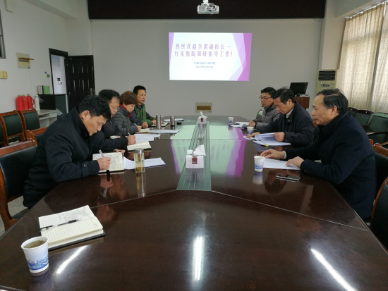临近放假,为有效促进学院国家基金申请、博士硕士学位点申报和研究生教育工作顺利开展,以及扎实推进假期各项工作的落实,副校长李震、科技处处长侯大寅和研究生部副主任王海一行1月14号到生化学院进行了调研指导。调研会由李震主持,教务处处长陶庭先、生化学院院长陶玉贵、副院长薛正莲和学院党委副书记章兵等参加了调研会。
