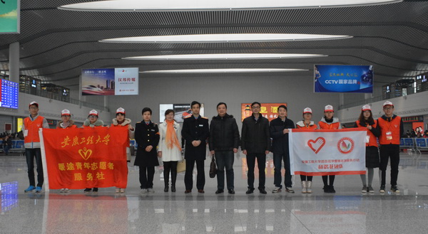 2月6日,人文学院党委书记邓英扣、副院长刘军、副书记金艾裙等到芜湖市火车站,在芜湖站党总支书记吴志祥、团支部书记刘昱十的陪同下,深入志愿者服务的各个岗位,亲切慰问志愿服务的同学,了解服务内容,对志愿者们牺牲春节假期积极参与春运志愿服务的行为给予充分肯定,并向志愿者们辛勤付出表示由衷的感谢!希望同学们将专业知识与社会实践相结合,发扬志愿服务精神,弘扬优良传统,将芜湖市火车站的节日志愿项目一届届地扎实做下去,用自己的努力和贡献为旅客带去温暖,在服务他人和服务社会中锻炼成长。并叮嘱大家注意安全,注意健康。芜湖站领导和职工对同学们的志愿服务给予了肯定,并表示感谢,他们为志愿者提供了更多的关心。