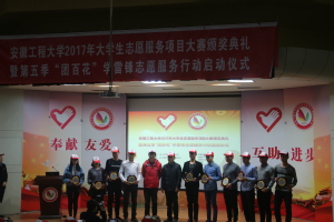 每年3月5日学雷锋纪念日前后,我校均举行“团百花”学雷锋志愿服务行动启动仪式,通过丰富多样的形式营造氛围,引领广大青年学生积极投身志愿服务,践行社会主义核心价值观、争做向上向善好青年。2017年3月3日下午,校党委宣传部、学工部、研究生工作部、校团委、马克思主义学院、学生会、研究生会联合举行2017年度大学生志愿服务项目大赛颁奖典礼暨RayBetApp官网下载 第五季启动仪式。校园内,校党委宣传部、校团委制作了众多充满志愿色彩、体现青年风貌和主题的标牌,并科学放置在校内不同场所;“团百花”学雷锋志愿服务行动品牌项目团队分别以横幅的形式亮明其志愿服务的口号,向全校师生倡导社会主义核心价值观、雷锋精神、志愿精神。300多名注册志愿者头戴“小红帽”齐聚学术报告厅,参加第五季“团百花”学雷锋志愿服务行动启动仪式,共同迎接第54个雷锋纪念日、第18个“中国青年志愿者服务日”的到来。启动仪式开始前,现场播放的暖场视频,全面回顾了2016年“团百花”学雷锋志愿服务行动开展情况以及取得的成果。校党委宣传部、学工部、研工部和马克思主义学院主要负责人为“第五季”学雷锋志愿服务金奖团队代表、2016年度“十佳青年志愿者”颁奖。我校“团百花”学雷锋志愿服务品牌项目团队代表现场分享经验。校党委书记陈其工、校党委副书记苏国红出席了启动仪式。