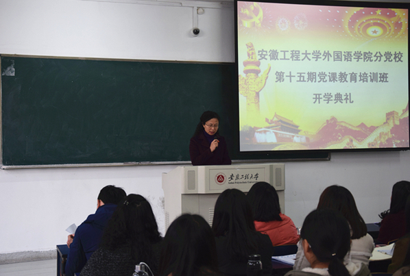 3月9日下午,外国语学院分党校于六教109举行第十五期党课培训班开学典礼。院党校副校长谈丽华参加了典礼。开学典礼由班主任余本祺主持,65名入党积极分子参加。