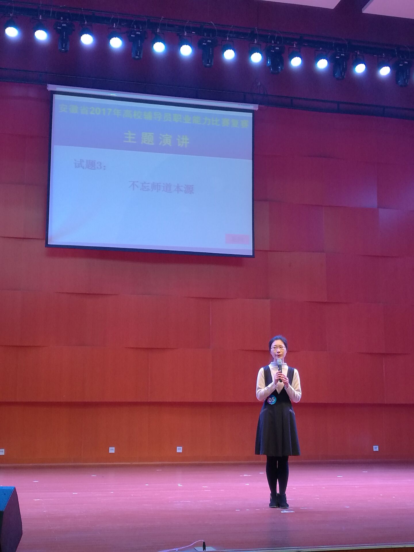 3月11日至13日,2017年安徽省高校辅导员职业能力比赛皖南赛区复赛在铜陵学院举行。我校两名90后辅导员李悦、章文宜与其他高校42名参赛选手展开激烈角逐,最终双双获得二等奖,其中数理学院李悦将代表皖南片区高校参加本月24日至26日的安徽省决赛。