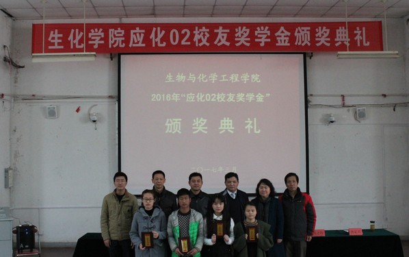 唐定兴宣读了2016年“应化02校友奖学金”获奖学生名单:卢晓韩获一等奖,舒畅、殷玉琪获二等奖,曹雯静、胡会军、孟丹妮获三等奖。
