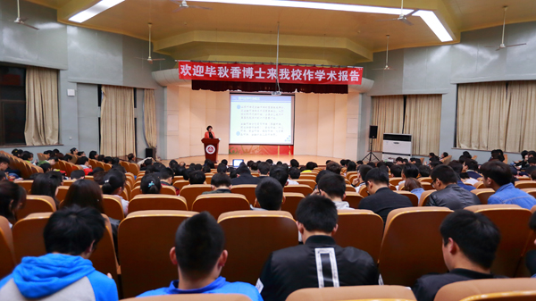 3月27日晚上,广发证券股份有限公司高级研究员、副教授毕秋香博士应邀在校学术报告厅为数理学院学子作了题为《国内证券市场实务及研究》的学术报告。数理学院院长费为银、副院长王传玉、学院全体研究生以及大二本科学生聆听了报告。报告会由费为银主持。