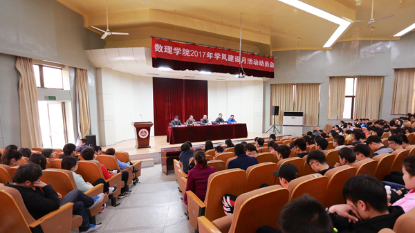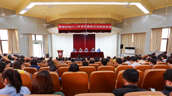 数理学院院长费为银在动员讲话中紧紧围绕“为什们开展学风建设月活动?”和“如何有效地开展学风建设月活动?”两个方面深刻阐述了开展学风建设月活动的目的意义,提出了明确的要求。他认为,学风是学校文化底蕴和办学理念的反映,关系到人才培养和教育教学质量的提高。“学风好不好,教育是先导”。他说教师的师德师风、人格力量对学生的教育是潜移默化的过程,优良的学风对学生求学兴趣的激发、高尚情操的陶冶、健全人格的培养、综合素质的提升有着积极的影响。他指出,大学生要成为又红又专、德才兼备、全面发展的社会栋梁,要潜心向学、虚心求教,从自身点滴处做起,在课堂与社会实践的学习中,不断提高自我文化素养、专业素质以及解决社会实际问题的能力素质。