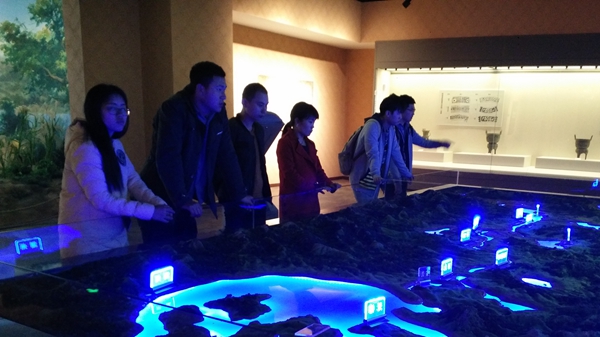 芜湖历史悠久、文化深厚。一走进博物馆展厅,脚下会有长江流水的符号,象征芜湖为皖江明珠,眼前则会呈现一幅芜湖籍画家萧云从的《太平山水图》大型铜雕,一下子便让参观者有走进历史之门、踏入历史长河、打开历史画卷的强烈感受。“鸠兹春秋、水韵芜湖”、“山水毓秀、皖江明珠”、“人祖觅踪、文明初现”、“鸠兹沧桑、青铜光华”、“江东重镇、汉晋遗风”、“物华天宝、皖之中坚”、“峥嵘岁月、风起云涌”,一个个专题展览展现了芜湖经济文化的发展和社会形态的变迁,让同学们从一个缩影感受到中华民族光辉绚丽的历史文化。特别是通过新文化运动、抗日、解放战争、改革开放的历史回顾,从“渡江第一船”到“邓小平三谈‘傻子瓜子’”,生动再现了在党的领导下,建立新中国、改革开放和实现中华民族伟大复兴的伟大成就和光明未来。