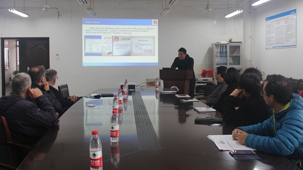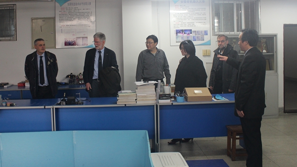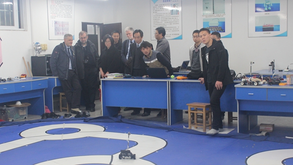 汪军代表学院对布雷西亚大学代表团表示欢迎,并委托章平对学院的基本情况进行了介绍;布雷西亚大学代表团也简要介绍了布雷西亚大学的基本情况,特别是依托意大利发达的工业企业开展机器人、机器视觉等工程应用研究的情况。随后,代表团参观了学院创新实验室,现场观看了学生操作的跳舞机器人和飞思卡尔两轮车赛道赛的演示,并与面部表情识别科研团队老师进行了交流。代表团对学院展示的项目表现出浓厚的兴趣,并对老师和学生的演示给予连连称赞。
