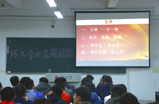 据悉“团团讲团课”是校级学生组织团学骨干为响应“一学一做”教育实践号召,主动提出并开展的一项创新活动。此次“一学一做”教育实践主题团课对环境工程专业的同学们来讲,是一次难得的思想政治教育形式,充分发挥了朋辈辅导的作用,这次团课也加深了同学们对“一学一做”教育实践的理解和认识,有助于团员青年增强“政治性、先进性、群众性”,更好地规划未来发展蓝图。