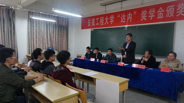4月7日下午,第二届RayBetApp官网下载 “达内”奖学金颁奖典礼在计算机与信息学院B座508教室胜利举行。参加典礼的有达内时代科技集团安徽大学生实训基地总经理纪仁义、院校总监王瑞、院校经理徐超,我校发展规划处(教育发展基金会)处长(副理事长兼秘书长)曹安照,计算机与信息学院党委书记邬海量、院团委书记马晓琼以及所有获奖学生,颁奖典礼由邬海量主持。