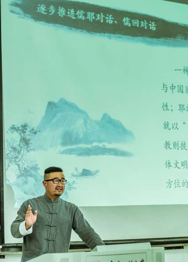 讲座伊始,刘伟由设问“文学是什么”引入主题。他认为,以万古宗师孔夫子的话说便是“文,行,忠,信”四字。文学本身有它的国度,亦有它的体系,它代表的自然也不是简简单单的“文学”二字,更是每一场文明的表达。而中华的文学更是刚柔交错,观乎人文以化天下,以一种极大的包容性而存在。接着,他借用一代宗师老子的话:“三十幅共一毂,当其无,有车之用。埏埴以为器,当其无,有器之用”来引喻文学的作用。刘伟以桐城派为例,讲述了桐城派几百年来对中华文明的影响。他提出,虽是一个普通的文学派别,却影响了一代代人的思想。既而,他强调,文学与当代大学生的担当精神相辅相成。他表示,中华文学从上古开始便蕴含着责任,担当,这样的民族精神。无论是在哪一个方面,比如天下,官府,个人等方面,都在教育着我们要有担当精神,要主动去建设我们的国家。一个文学作品没有了它自己的精神担当,也就失去了它的文化内涵,恰似一个人失去了他的精神,便是行尸走肉。