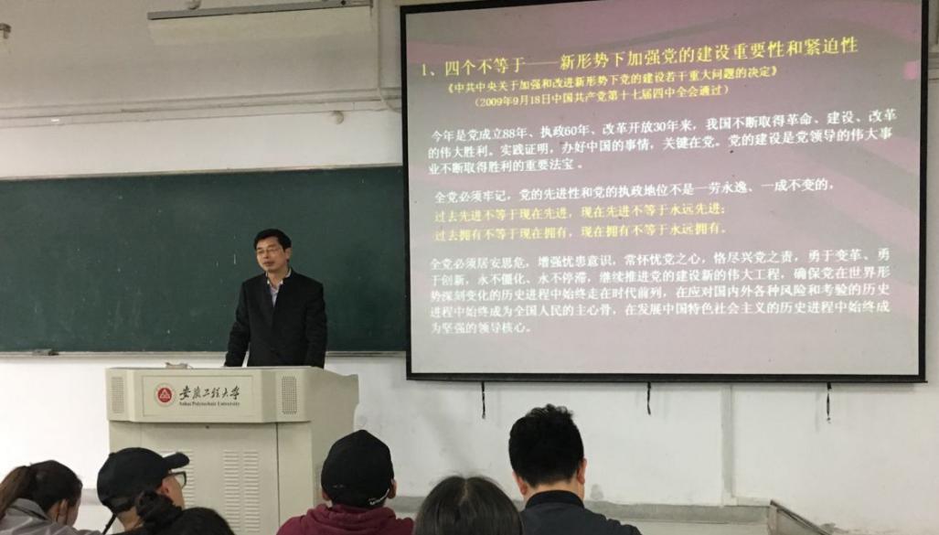 4月5日下午,刘金斌给全体学员做了《中国共产党从严治党的历史过程和经验启示》专题报告。报告从“习近平为何从严治党”、“习近平如何从严治党”、“从严治党的历史过程”、“从严治党的经验启示”四个方面进行了详细阐述,带领广大学员在品读党史的过程中加深对党的理解和认识认识,使大家更加深刻的认识到中国共产党从严治党的历史过程。刘金斌强调,广大学员作为在思想上、行动上积极向党组织靠拢的青年,更应该加强政治学习,时刻保持思想的先进性,牢固树立“四个意识”,用实际行动表明自己要求入党的正确动机。