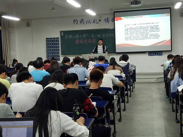 根据《校团委关于集中开展“学习习近平总书记重要讲话 做合格共青团员”教育实践的实施方案》的部署要求, 4月16日,数理学院16级统计团支部和金融团支部分别邀请校团联会主席、信管141李津全同学和校团委书记助理、电子151李志浩同学在5教501、502教室为数理学院2016级全体共青团员讲授“一学一做”教育实践主题团课。