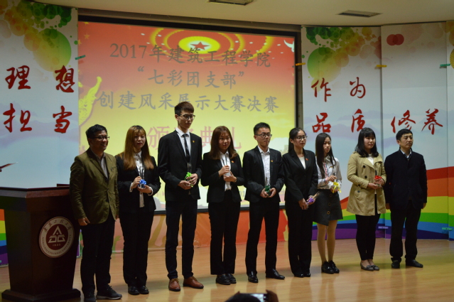 大赛还采用了微信上墙等方式,加强线上和线下的互动。经过两个多小时的激烈角逐,建筑141、给排水151、土木(升)162、土木141、建筑161、土木142、建筑162等七个团支部荣获2017年“七彩团支部”。冉昆玉和李烨为“七彩团支部”颁发奖杯。大赛在热烈的掌声中落下帷幕。