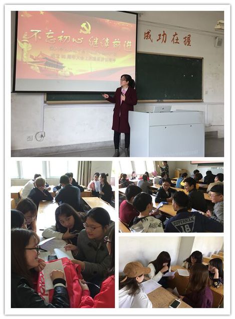 为深入学习习近平总书记系列重要讲话精神,扎实推进共青团改革,大力推进全面从严治团,切实增强团员的先进性和光荣感。4月12日下午纺织服装学院辅导员陈倩在5教217教室为2014级全体团员开展“不忘初心 继续前进”主题团课。