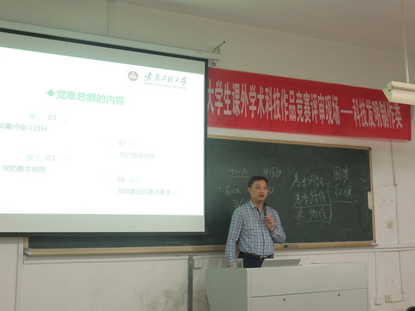 “国有国法,党有党规。党章是最根本的党内法规。”邓英扣首先指出,认真学习党章,严格遵守党章,将党章“内化于心,外化为行”是对每一个党员的基本要求。他从党章是什么、党章讲什么、党章要求我们做什么三个方面带领同学们深入学习了党章的重要思想。他指出,党章是我党发展过程中经验教训的总结,是把握正确政治方向的根本准则,更是坚持从严治党方针的根本依据。随后,邓英扣向同学们解读了党章的基本框架及党的性质、指导思想,阐述了我国社会主义初级阶段的方针、路线和政策,着重强调了改革开放以来在中国特色社会主义道路指导下我国的政治、经济成就。