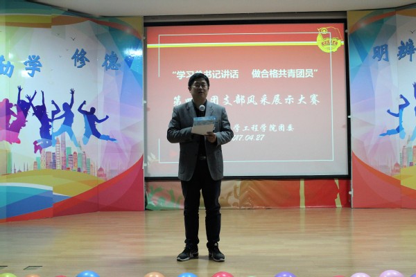 比赛结束后,刘海涛老师对本次大赛进行了点评,他充分赞扬了各团支部的建设成效,肯定了各团支部在“一学一做”教育实践贯彻落实中扎实推进的作风,也鼓励在场的团员青年要继续深入学习习近平总书记重要讲话的精髓,成为有理想、有追求、有担当、有作为、有品质、有修养的大学生。