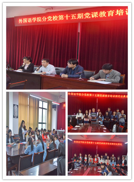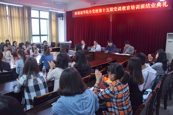 4月26日下午,外国语学院分党校第十五期党课教育培训班结业典礼在9教会议室举行。分党校校长、院党委书记魏长顺,院党委委员秦军和培训班负责老师出席了典礼。典礼由班主任余本祺主持。