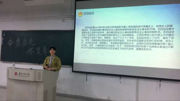英语161班团支书夏萍萍介绍五四运动的历史背景,重大事件及历史意义等内容,引导同学们重温五四运动历史,缅怀革命先烈。