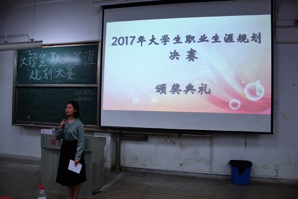 外国语学院2017年大学生职业生涯规划大赛决赛于4月26日在6教215举行。周亮和荣星月同学荣获本次大赛的一等奖。辅导员张君及16届全体学生观看此次比赛。
