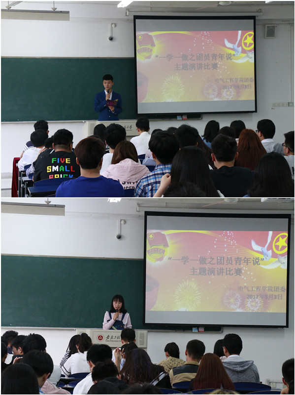 为引导广大青年团员树立共产主义远大理想和坚定中国特色社会主义理想信念,积极弘扬社会主义核心价值观,深入贯彻落实“一学一做”教育实践,在“五四”青年节来临之际,电气工程学院团委于5月3日下午在6教109举行“一学一做之团员青年说”主题演讲比赛。学院团委副书记毕亚琴和15级、16级全体团干观看了比赛。
