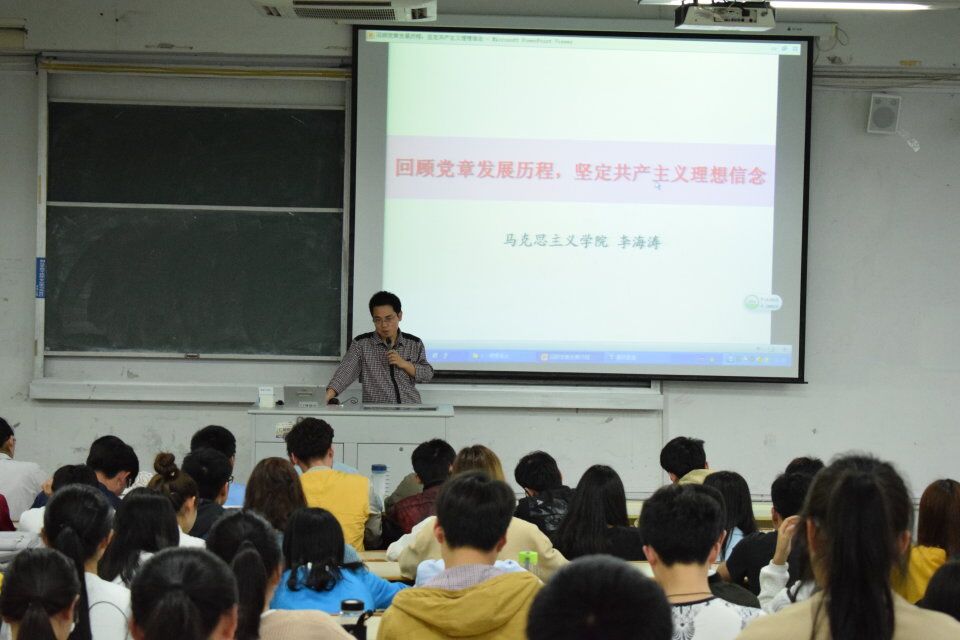 5月4日晚上,马克思主义学院副教授李海涛在2教306教室为管理工程学院青马班学员们作题为“回顾党章发展历程,坚定共产主义理想信念”的精彩讲座。
