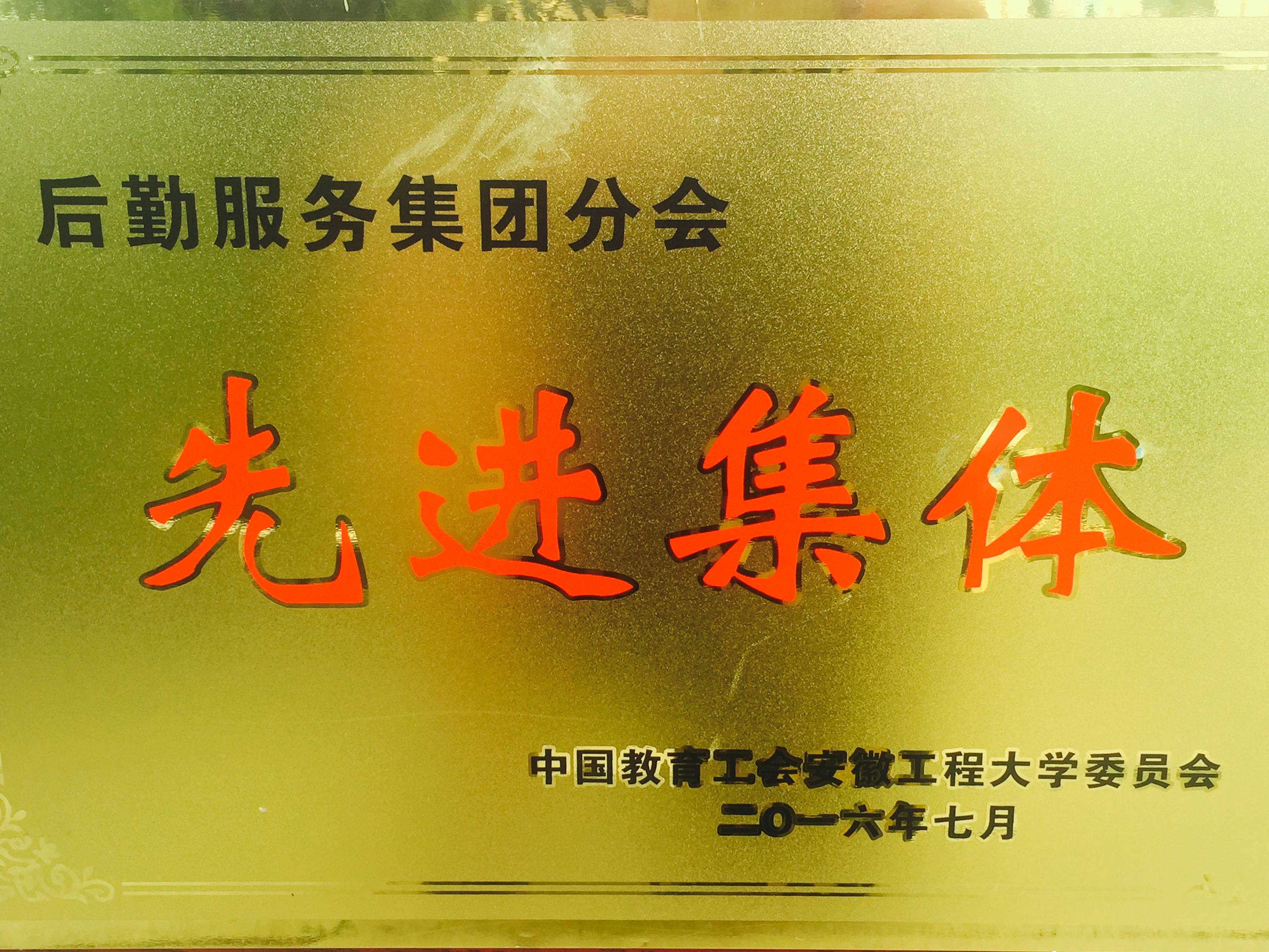 在5月19日校工会工作培训会暨工会系统先进集体(个人)表彰大会上,后勤集团分工会被授予2016年度“安徽省教育分工会先进集体”、“安徽会工程大学工会先进集体”荣誉称号。