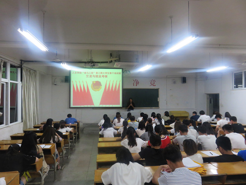 为积极响应“一学一做”教育实践活动号召,培养大学生骨干、团干部、青年优秀代表的综合素养,为青年交流与互动搭建共享平台。5月21日晚七点,人文学院于4教108教室举办第三期“青马工程”培训班结业考核典礼。典礼由院团委书记兼学工秘书黄江胜主持。