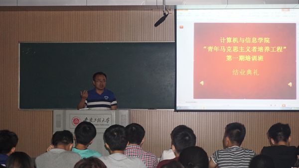 5月22日晚,计算机与信息学院“青年马克思主义者培养工程”第一期培训班结业典礼在5教116教室隆重举行。校团委副书记郭广春、院党委副书记章靖平、院团委书记马晓琼、班主任苑雨露和全体学员参加,马晓琼主持此次典礼。
