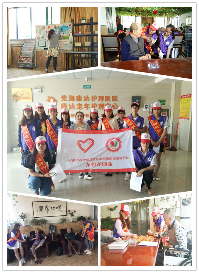 在镜湖区香苑老年公寓和康达老年护理中心,志愿者们小心翼翼地将老人们搀扶到活动场地展开宣讲活动。在与老人的交流过程中,志愿者们采取一对一、一对多的形式向老人们介绍肺结核的相关知识;并通过播放结核病预防视频,让大家加深印象、理解透彻。由于老人们本身非常注重健康,对肺结核方面疾病有一定了解,活动进展非常顺利。宣传结束后,志愿者们和老人们唠起家常、下起象棋;其中有两位老奶奶热爱唱戏,更是在现场直接“斗唱”,志愿者们充当观众为其精彩表演连连叫好。活动结束,志愿者们与可爱的爷爷奶奶分享精美礼品,并将他们一一送回所住房间。志愿者们成为爷爷奶奶口中声声唤着的孩子,在离别之际,老人们祝愿着这群孩子学习进步,成绩更上一层楼。