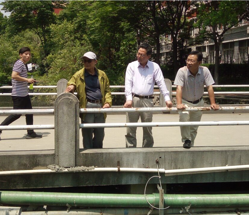 5月24日上午,由副校长郭兴众带队,后勤服务集团总经理胡长新、校园管理中心黄培庆,总务处副处长胡章文、维修管理科叶洪流、能源保障科高潮、大众物业沈飞等人现场察看校园水系渗漏点。