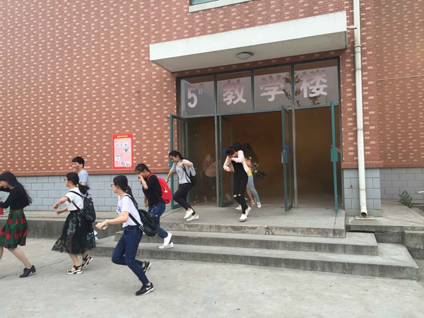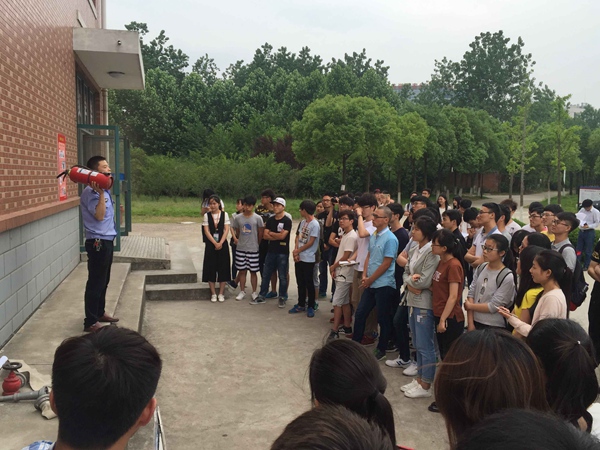 为贯彻校《关于开展2017年‘防灾减灾’专题教育宣传月活动的通知》文件精神,增强同学们防震防火防灾意识,提高其在突然灾害事故下的应急反应及自救互救能力,进一步培育同学们服从指挥、团结互助的良好品质,5月25日,在校保卫处指导和配合下,数理学院组织学生在5教开展防灾减灾应急疏散及灭火演练活动。本次活动共有近100余名学生代表参加。保卫处副处长江海、数理学院党委副书记水心宝观看了演练。