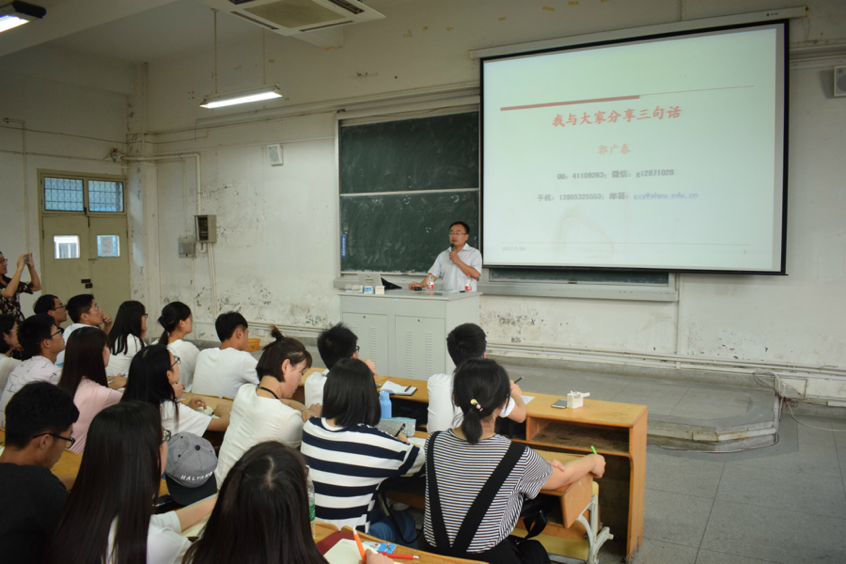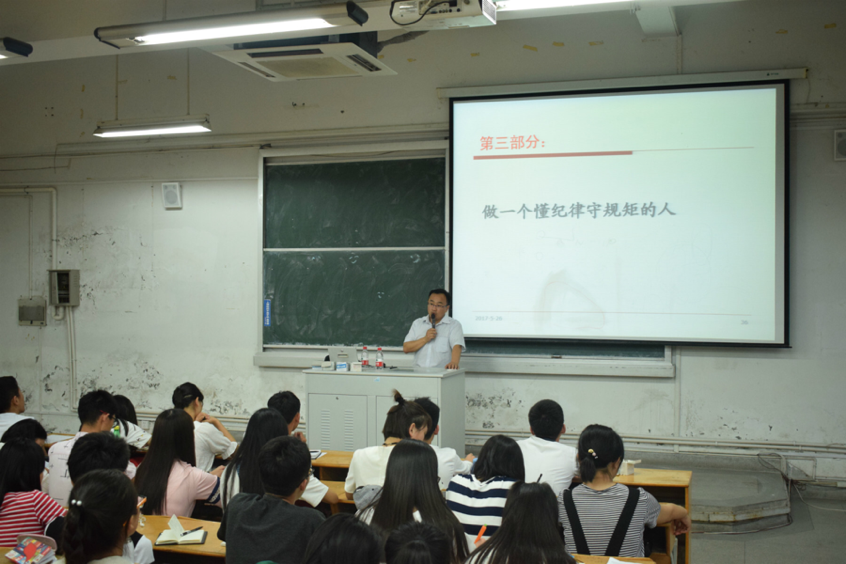 5月26日晚,校团委副书记郭广春在2教206教室为管理工程学院青马班的全体学员上了一次生动团课,通过与学员们分享了饱含深意的三句话,让他们对以后的学习与工作有了更明确的目标。