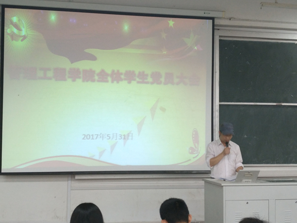 汪张林就学生党员如何结合“两学一做”、“课堂新态”做合格共产党员为题,为同学们上了一堂党课。他说“两学一做”和“课堂新态”建设是学生党员发挥先锋模范作用的载体,学生党员要在三个方面起到示范作用,首先要增强纪律意识,模范遵守校纪校规,严守党的纪律;其次要在学风建设上发挥先进作用,不能忘记自己作为大学生的主要任务和职责;第三是要以实际行动做到全心全意为人民服务,不仅自己要创先争优,而且要感染和带动其他同学在思想和学习上进步。最后,他传达了学校致2017届全体毕业生党员的一封信,希望毕业班党员在毕业答辩、文明离校中发挥作用,走向社会后仍要积极向上,成为对社会有用的优秀人才。