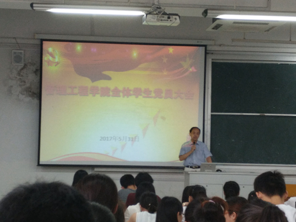 为进一步推进“两学一做”学习常态化,基层党组织建设标准化,发挥学生党员在“课堂新态”建设、毕业生文明离校过程中的先锋模范作用,管理工程学院于5月31日下午在2教207教室召开全体学生党员大会,学院党委书记汪张林、党委副书记程繁及各学生支部书记参加了会议。会议由学院团委书记朱文明主持。