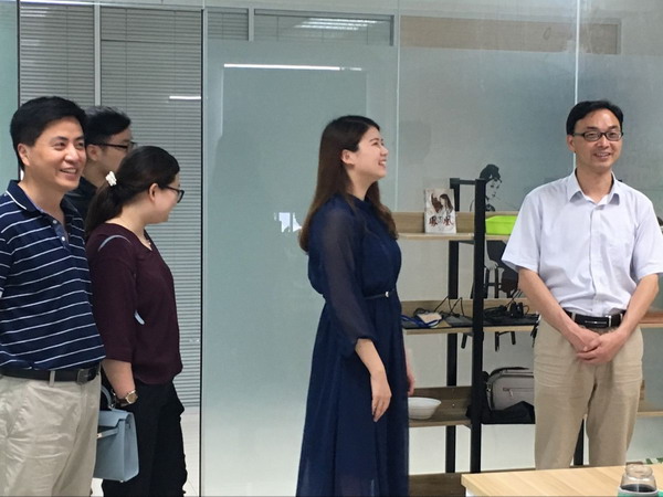 安徽艺创文化传播有限公司总经理张俊代表公司对刘军一行表示热烈欢迎,并对考察进行了精心安排。在张俊的陪同下,刘军一行参观了公司的培训室、策划室、创意室等。随后考察组与公司负责人就人文学院实习教学与管理方面的具体细节进行了交流。