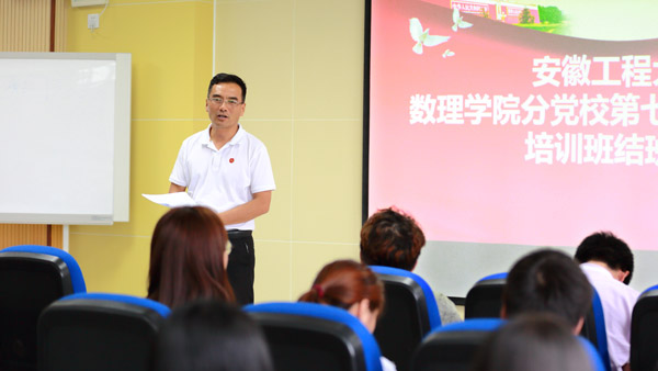 6月10日下午,数理学院第七期学生党员培训班结班典礼在金融工程实验室举行,数理学院党委书记周毅仁、党委副书记水心宝、金融学生党支部书记李悦、培训班班主任满志宏以及培训班全体学生党员参加了典礼。结班典礼由满志宏主持。